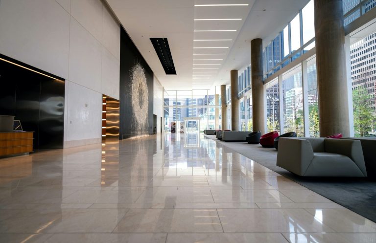 Nettoyage en profondeur des surfaces de travail, des sols, des installations sanitaires et des parties communes dans les bureaux.